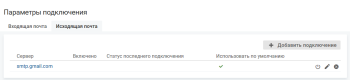 - На вкладке "Исходящая почта" нажмите кнопку Добавить подключение.