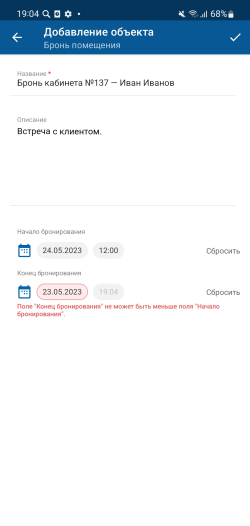 • Если доступных для выбора значений даты/времени нет, то поле атрибута не доступно для редактирования.
