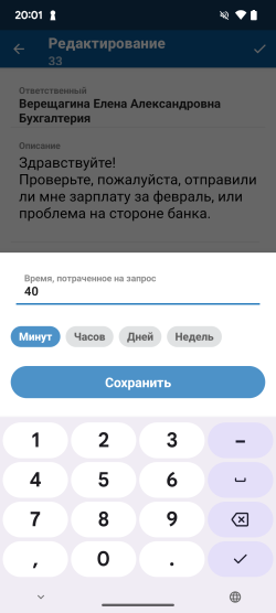Чтобы указать значение атрибута, нажмите на поле ввода значения атрибута. Откроется форма для ввода значения, в поле ввода установится курсор, на экране отобразится стандартная клавиатура для ввода текста (раскладка с цифрами). Введите значение атрибута.
