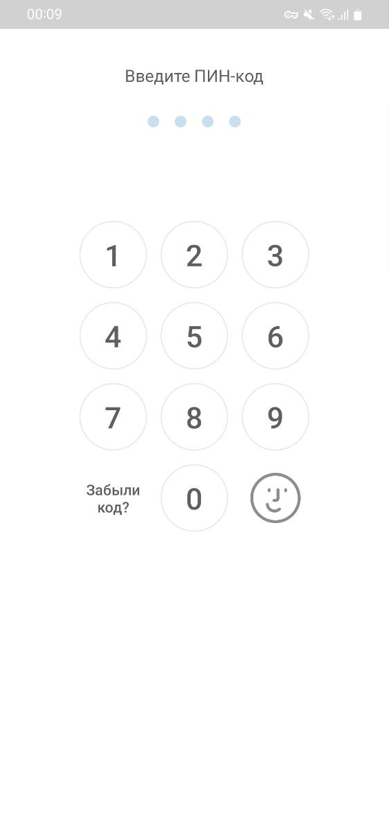 При повторном входе в приложение после блокировки экрана телефона или выгрузки приложения из оперативной памяти устройства открывается экран ввода ПИН-кода, если в мобильном приложении включена дополнительная аутентификация по ПИН-коду и биометрическим данным.