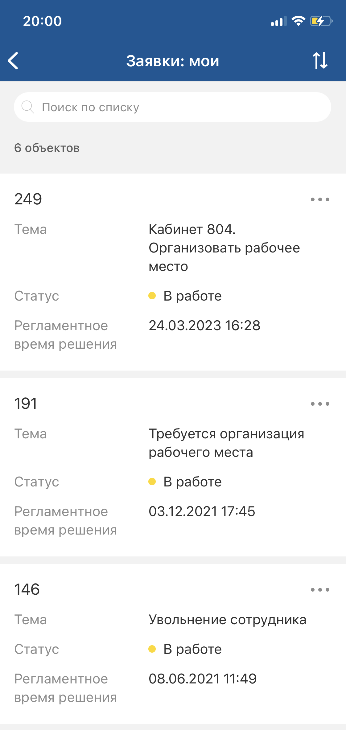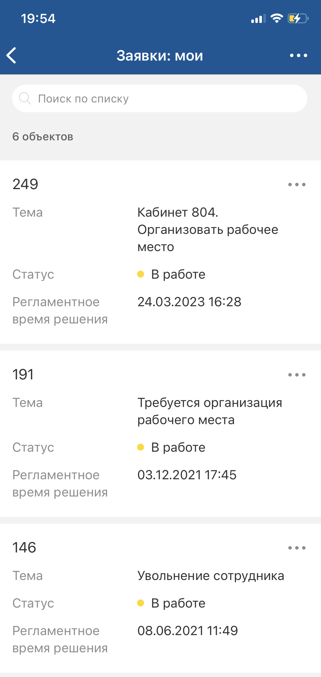 Чтобы выполнить поиск в списке объектов, введите поисковый запрос (критерий фильтрации списка) в поле "Поиск", которое отображается под верхней панелью.