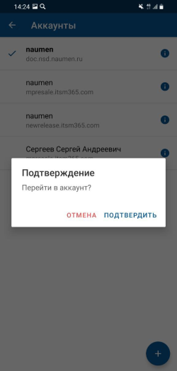 Выберите один из доступных аккаунтов и на виджете подтверждения смены аккаунта нажмите "Подтвердить".
