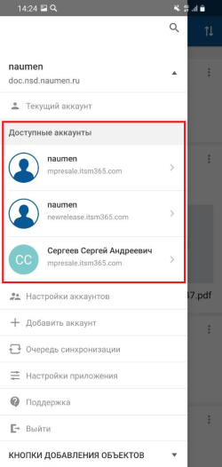 Чтобы сменить активный аккаунт, разверните меню мобильного приложения и выберите один из доступных аккаунтов.
