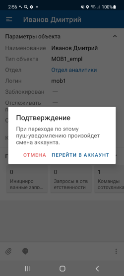Смена активного аккаунта по пуш-уведомлению