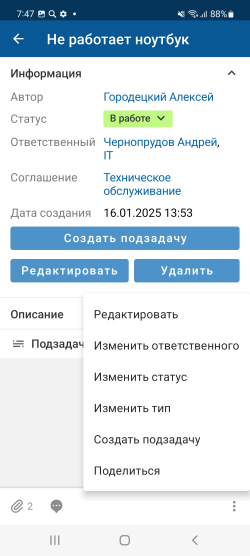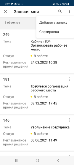В мобильном приложении можно добавить объект из карточки объекта, используя пользовательские кнопки в меню действий и на самой карточке