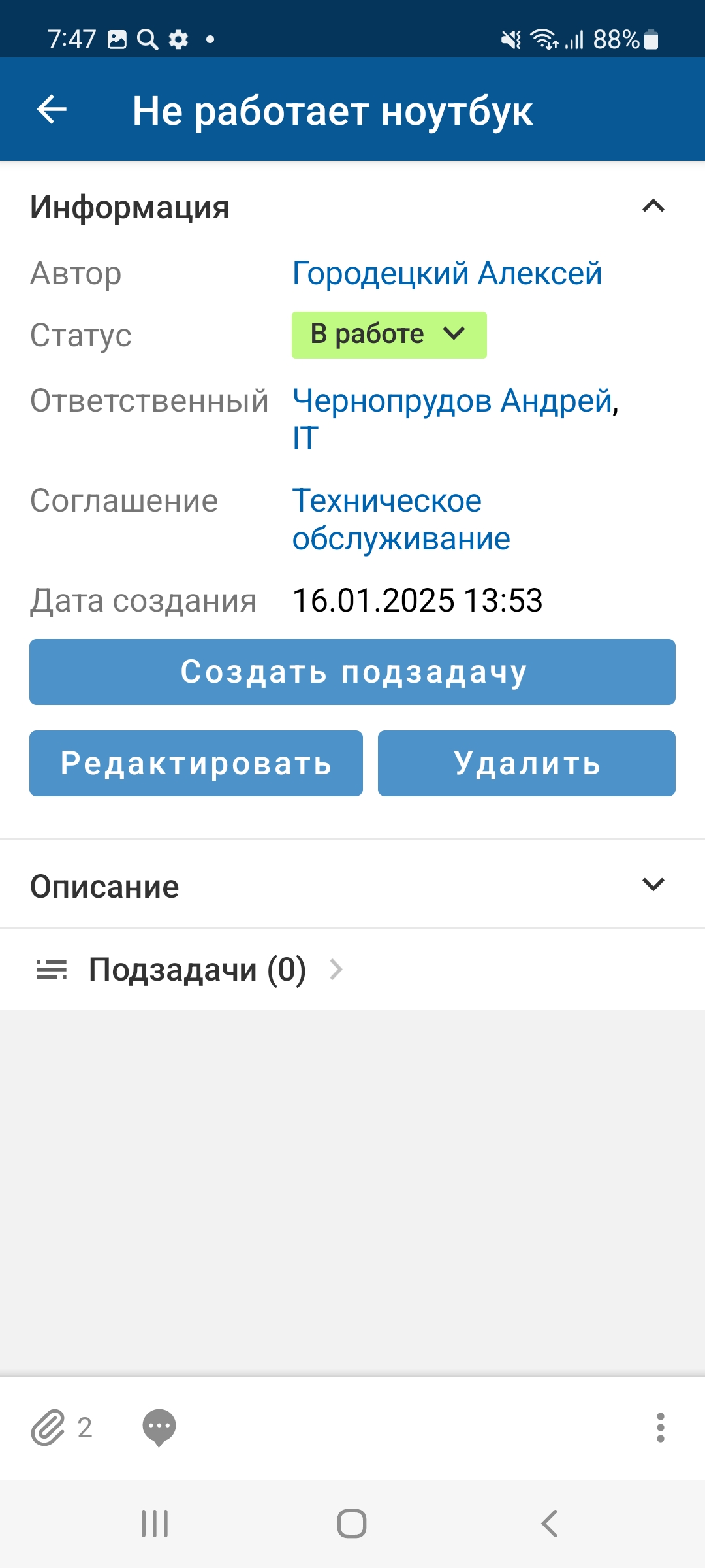 После добавления открывается экран карточки нового объекта.