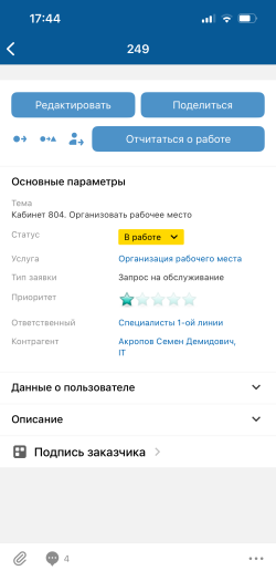 Переход на карточку автора комментария выполняется, если автор комментария не является суперпользователем и в мобильном приложении настроена карточка сотрудника (автора комментария), а у текущего пользователя есть право на просмотр карточки сотрудника.