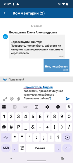 Чтобы отметить комментарий как приватный, включите тогл "Приватный" под полем текста комментария.