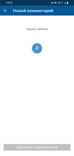 В мобильном приложении добавить комментарий можно двумя способами: с использованием голосового ввода или путем ввода текста с клавиатуры вручную. Описание ввода комментария вручную приведено в разделе Добавление комментария вручную. Android.