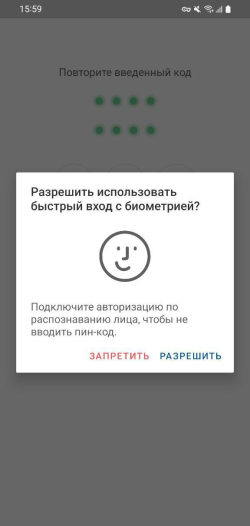 После установки ПИН-кода предлагается включить использование биометрических механизмов аутентификации.