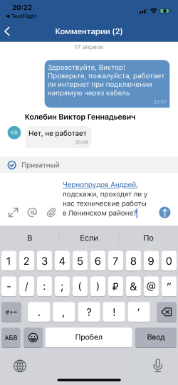 Упоминание можно добавить на экране "Комментарии" и на экране редактирования атрибута типа "Текст в формате RTF", включая текст комментария.