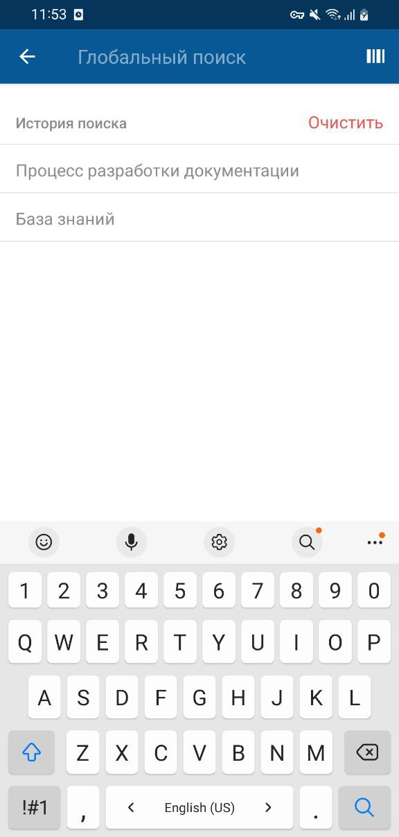 - Выберите поисковый запрос из истории поисковых запросов. В истории отображается 10 последних поисковых запросов, общих для всего приложения.