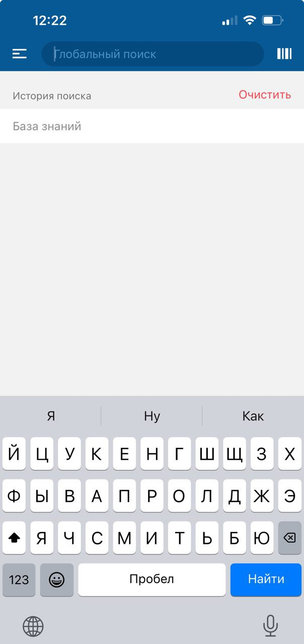 Откроется экран поиска. Курсор на экране автоматически устанавливается в поле ввода поискового запроса.