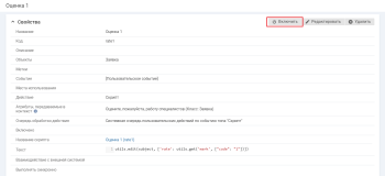 Атрибуты, передаваемые в контекст — "Оценка" (rate).