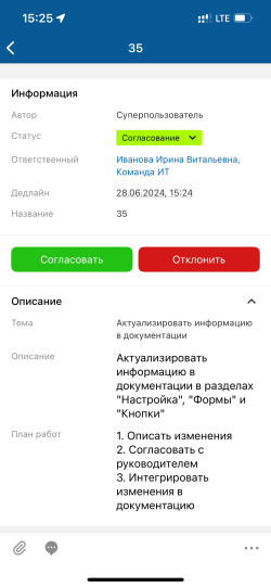 - Согласовать и отклонить задачу