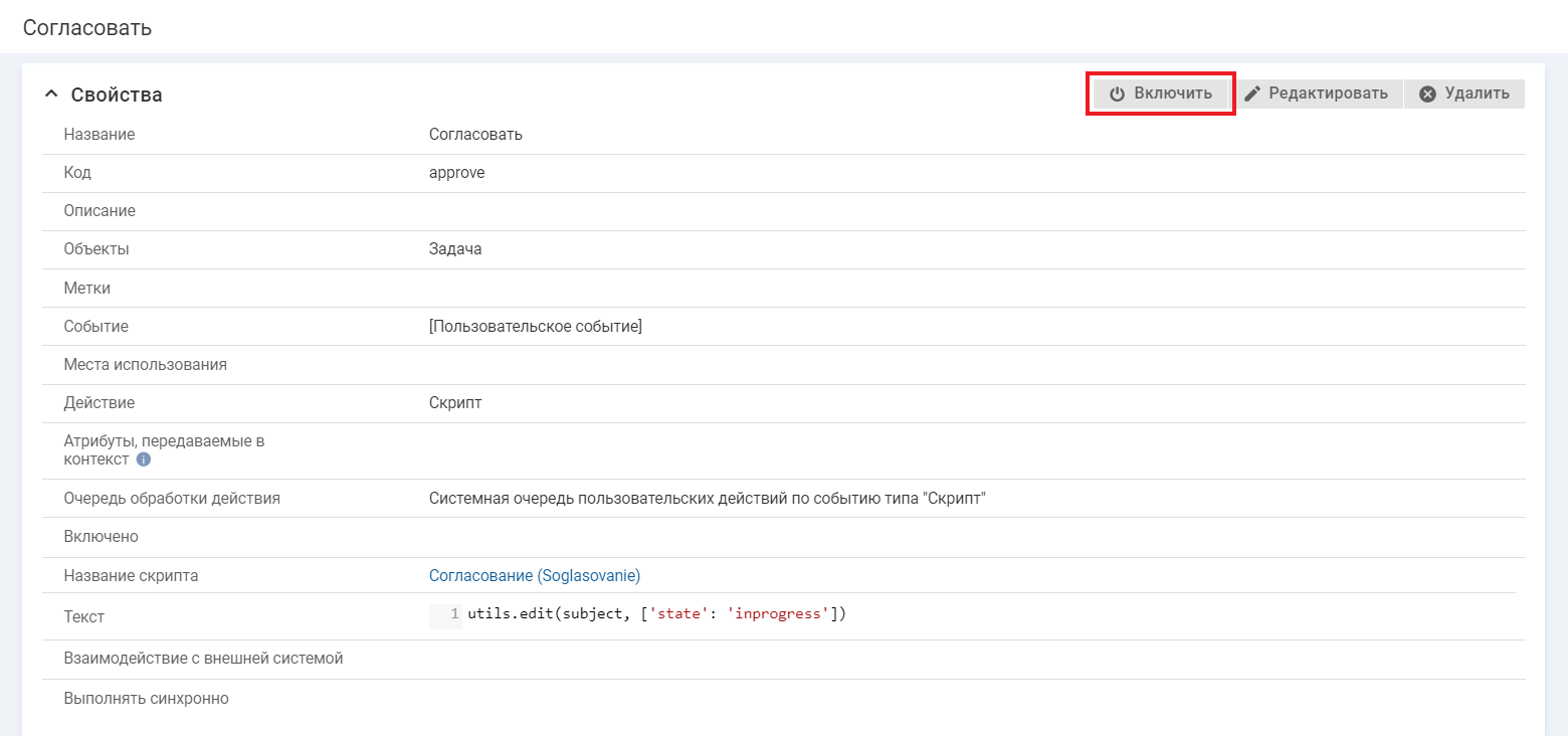 - Действие — "Скрипт".