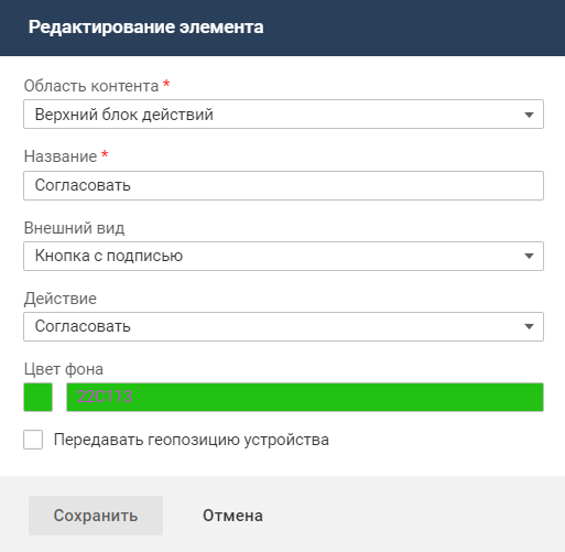- Название — "Согласовать".