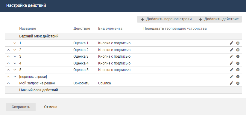 Рекомендации по настройке действий на карточке в МК