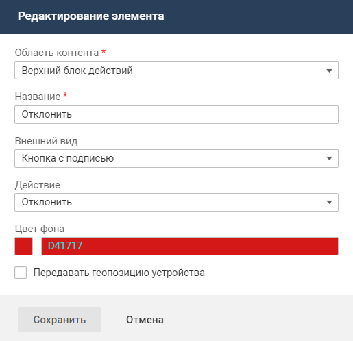 - Название — "Отклонить".