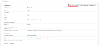 Настройка действий по событию