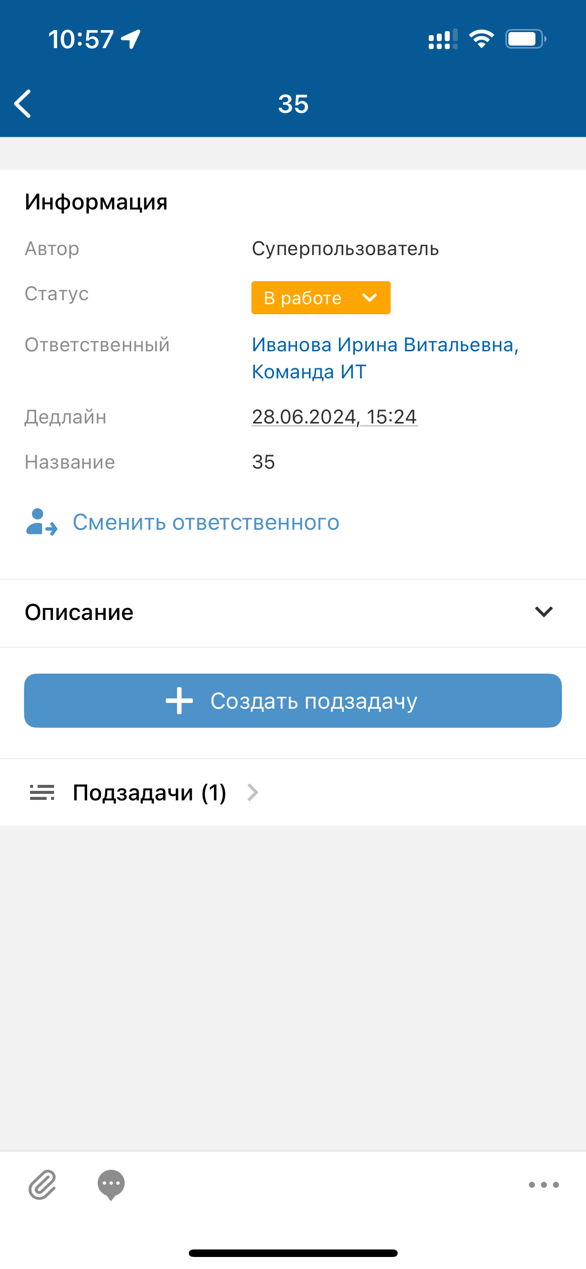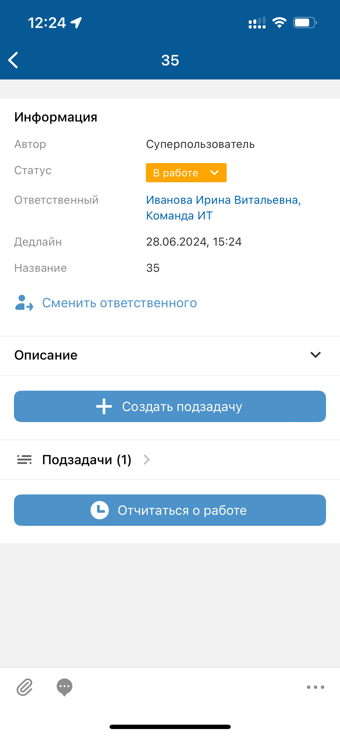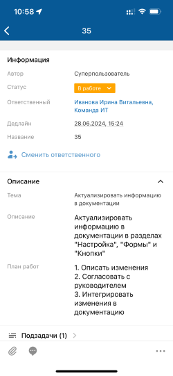 - Изменить ответственного по задаче