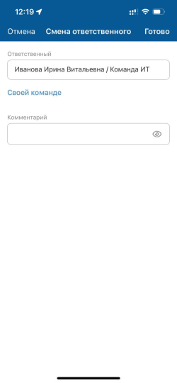 Изменить ответственного по задаче