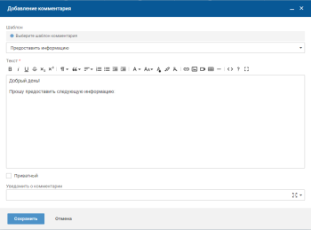 Описание выполнения действий в интерфейсе оператора см. Работа с комментариями к объекту