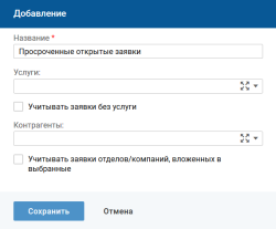 На открывшейся форме добавления заполните параметры отчета. В поле Название по умолчанию установлено название шаблона. Далее отображаются параметры, настроенные для данного шаблона.