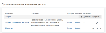 - На странице "Профили связанных жизненных циклов" нажмите иконку