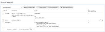 Чтобы перейти к странице каталога, выберите в меню навигации "Настройка системы" → "Каталог скриптов и модулей" → "Каталог модулей".