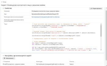 - Код — информационное поле, в котором указывается код, присвоенный скрипту при добавлении. (Поле "Код" заменяет поле "Номер").