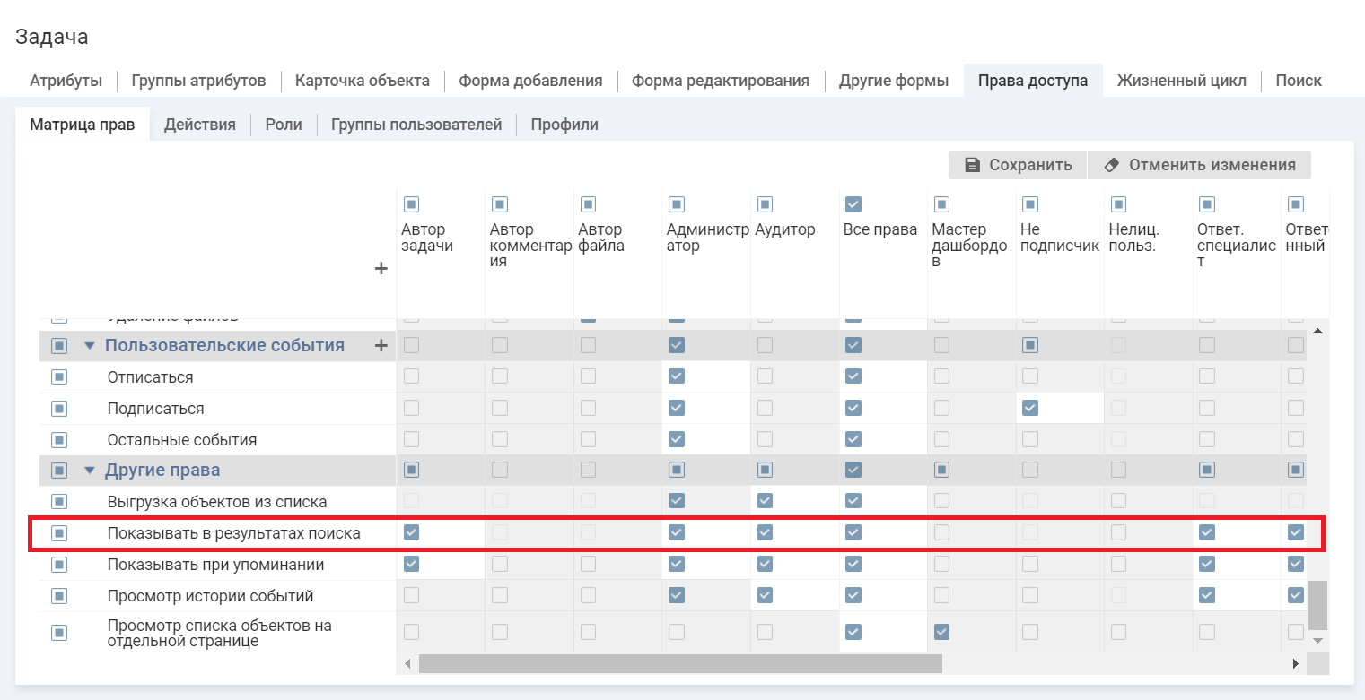 2. Для профиля установите право "Показывать в результатах поиска" в матрице прав класса/типа объекта.