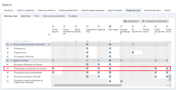 Для системных ролей правила фильтрации списка результатов поиска предопределены и не изменяются.