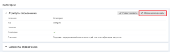 При запуске переиндексации происходит блокировка кнопки Переиндексировать на карточке соответствующего справочника. Кнопка Переиндексировать остается недоступной для нажатия до момента окончания переиндексации независимо от того, перезагружалась ли страница настройки класса/типа справочника. После окончания процесса переиндексации кнопка будет недоступной до первой перезагрузки страницы.