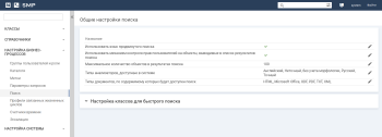 Раздел меню "Настройка бизнес-процессов" → настройка "Поиск" → страница "Общие настройки поиска".
