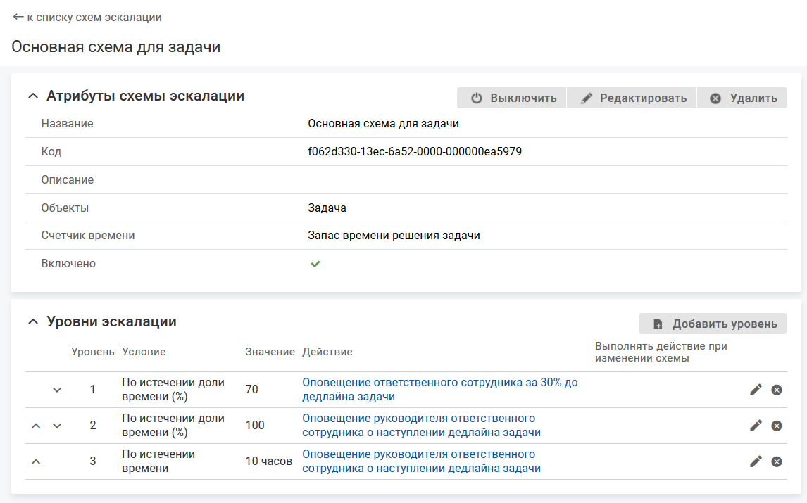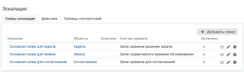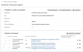 По умолчанию схема эскалации выключена, см. Включение и выключение схемы эскалации.