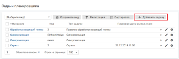 В списке задач планировщика нажмите кнопку Добавить задачу, заполните поля на форме добавления и нажмите кнопку Сохранить.