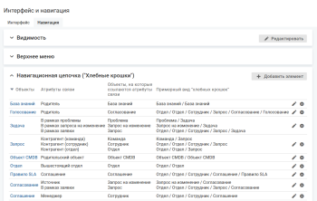 Настройка видимости навигационной цепочки в интерфейсе оператора