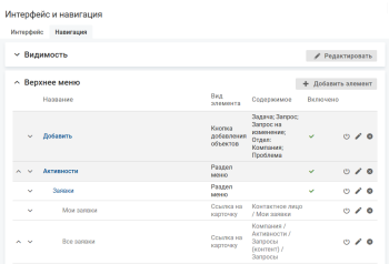 Чтобы добавить элемент "Ссылка на карточку" в верхнее меню, выполните следующие действия: